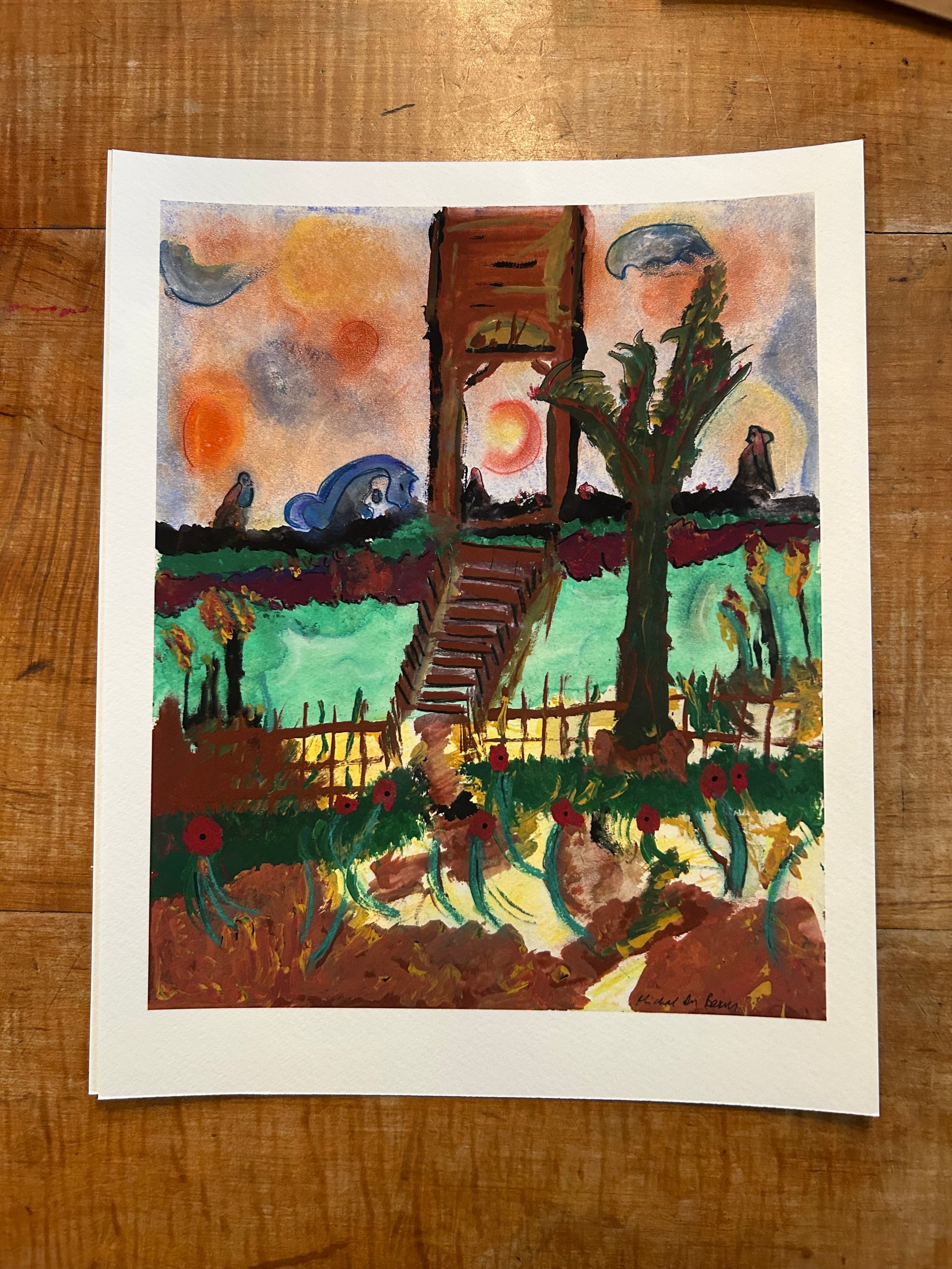 This limited edition giclée print is available in two sizes, The largest 16 by 20 inches is limited to 25 prints, each print will be numbered and hand signed by the artist.